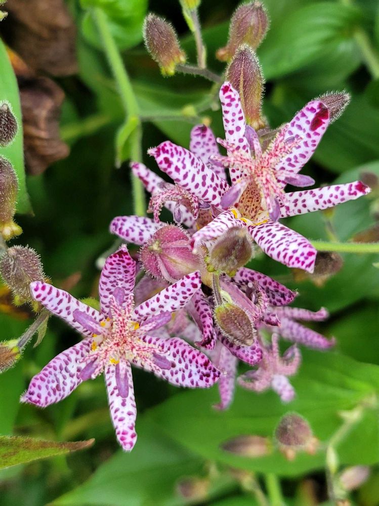 庭のホトトギスが沢山咲いてきました🤍💜🌿