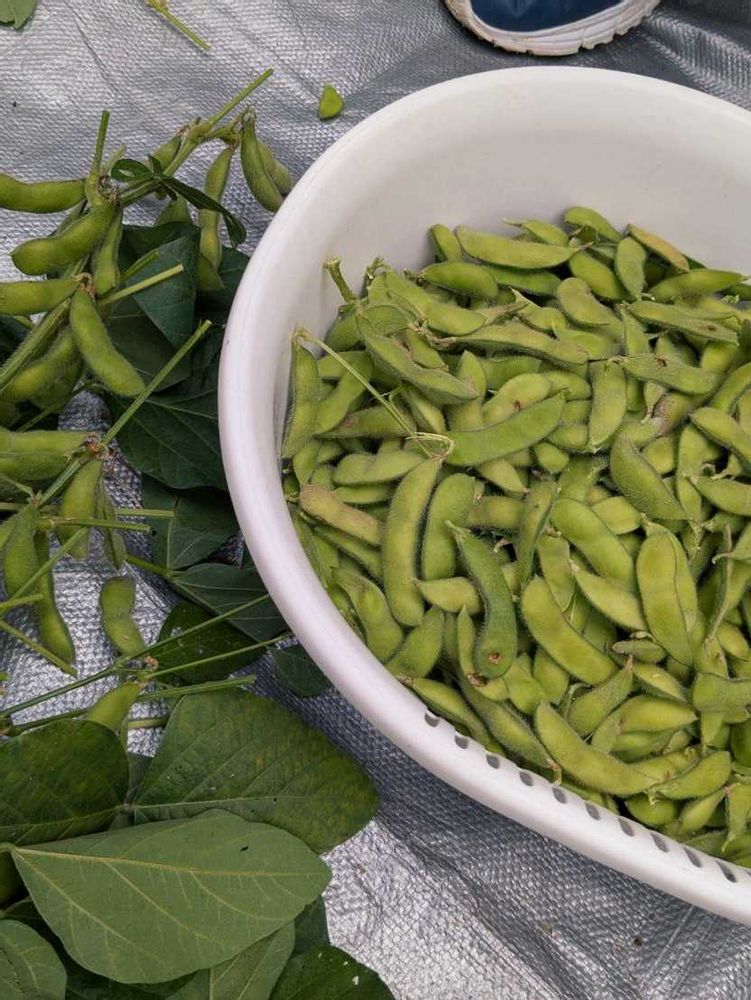 6月にまいた大豆が大きくなったので収穫しました‼️