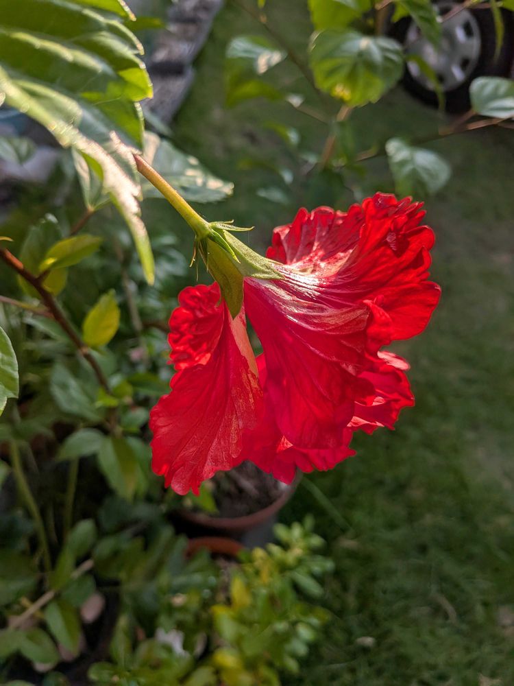 Florikko様。 真っ赤なお花のハイビスカス🌺とベゴニアのお花が咲いていてお庭が華やかですね😃