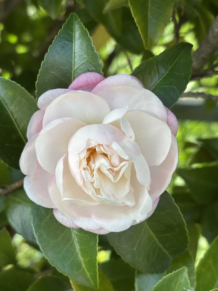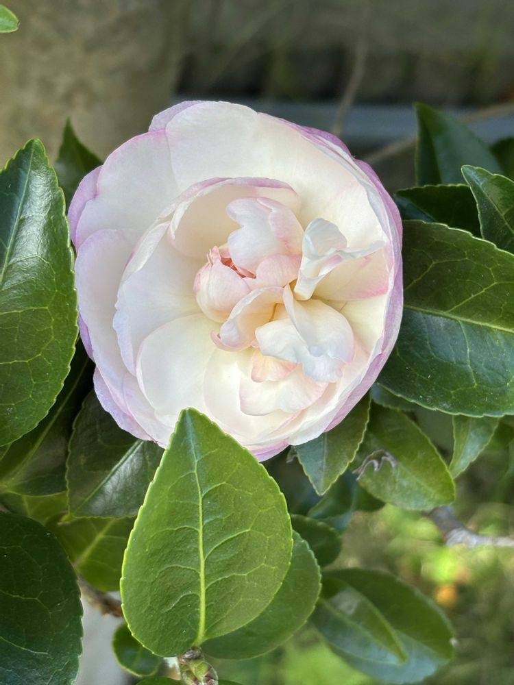 外側がほんのりピンク色で白い花びらが何重にも重なって咲いてる様子はバラの花のよう🤗