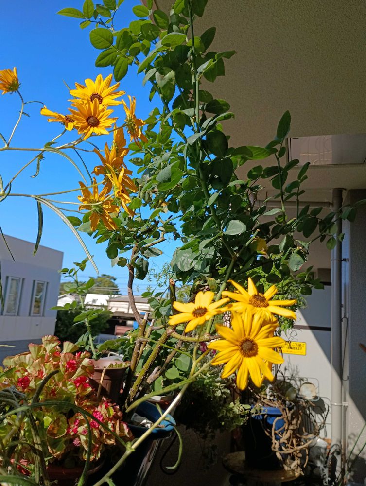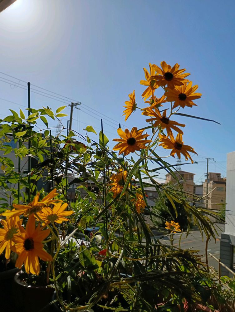 ベランダのお花少なく元気ないですが〜ビタミンカラーの姫ひまわり🌻