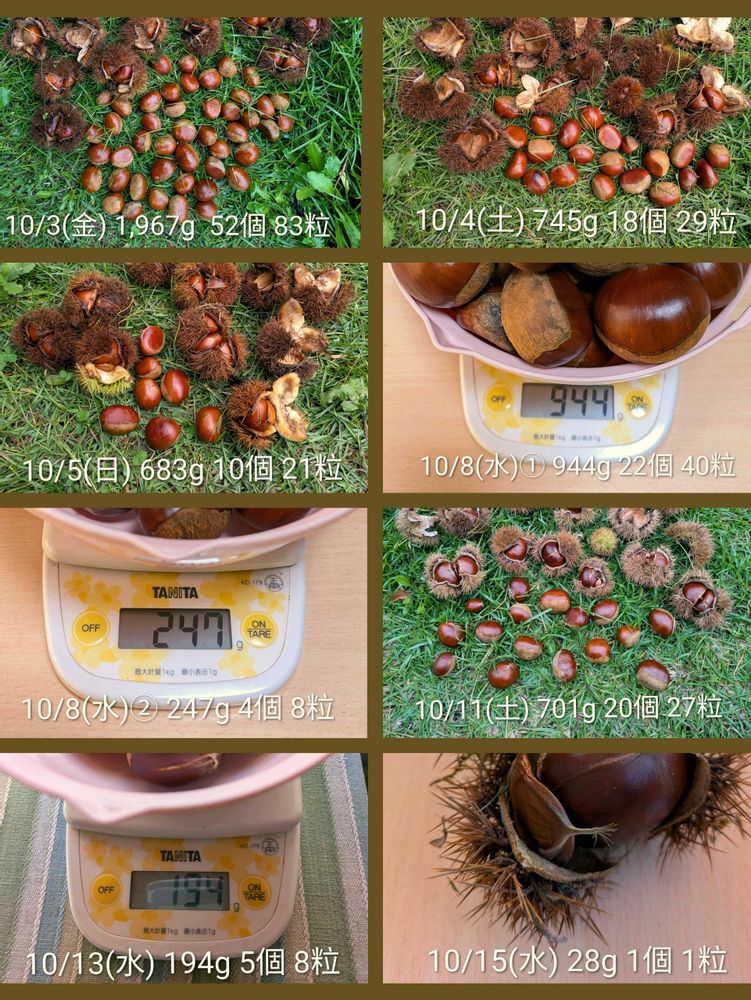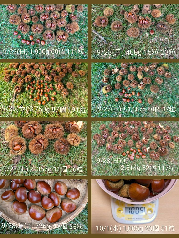 1本の栗の木から、延べ24日間で、約17kgの🌰が収穫出来ました😊