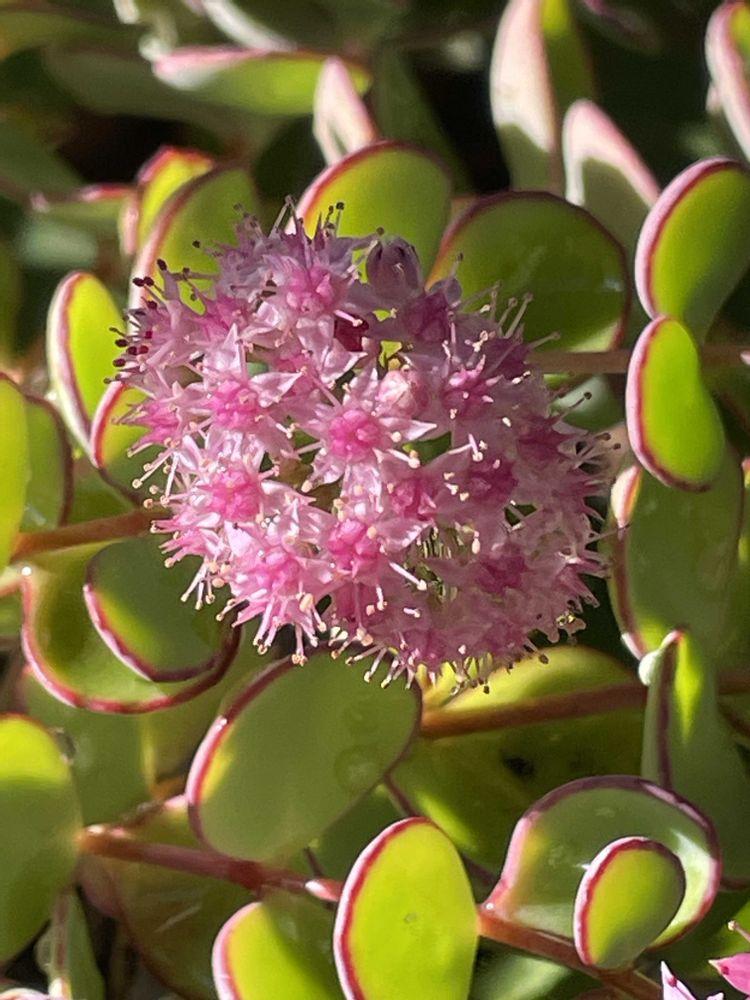秋になると茎の先からピンクの花を咲かせます。