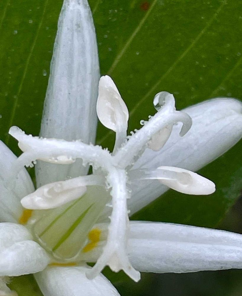 花の中央にある1本の雌蕊(花柱)は3深裂し、さらに各先端が2深裂します。