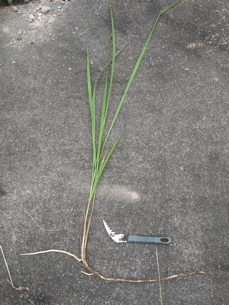 100均の草刈りで「チガヤ」を引っ掛けると長い根っ子が取れました😅