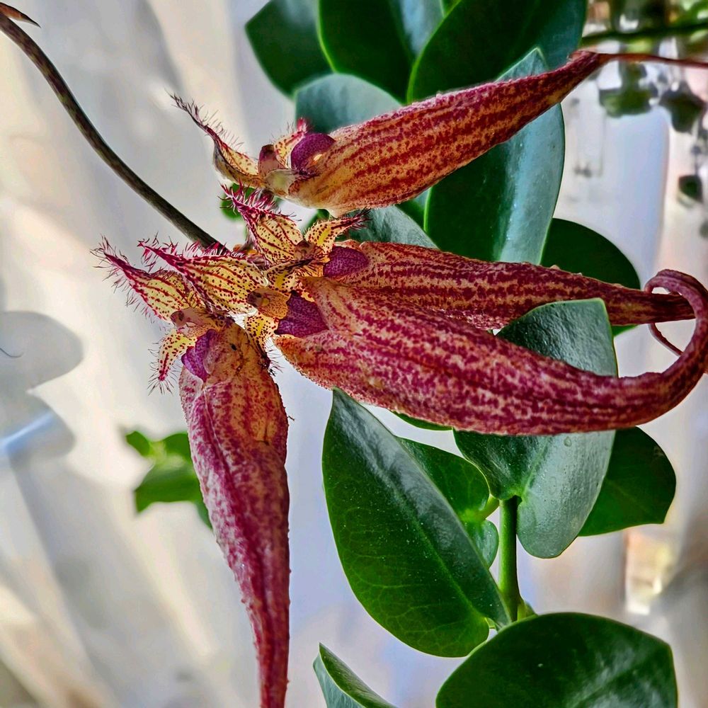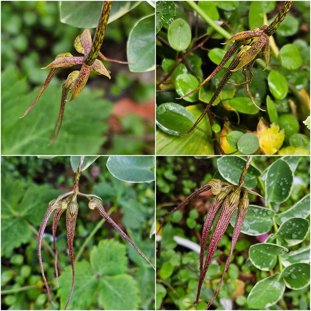 初めて見るお花。ラン科らしい、バルブ?茎。渋い色のランですね。なかなか翌年咲かせられないラン(我が家は葉っぱだけ😂)、今年も咲いてくれてありがとう💕