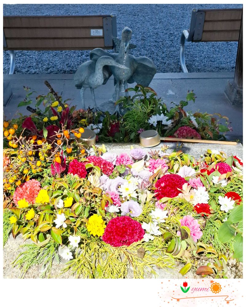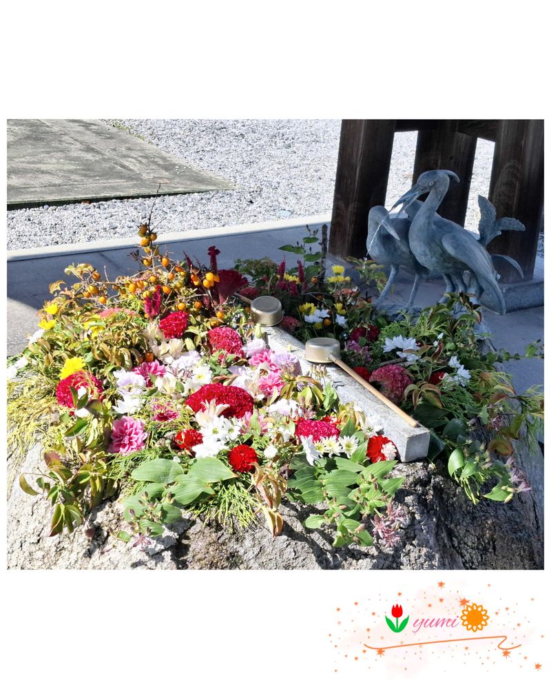 入れ替えたばかりの花手水を見られるなんて、ラッキーだね🌺🌷🌻🌼🏵️🥀🌹💮🌸🪷🌿💚🩷🤍❤️💜