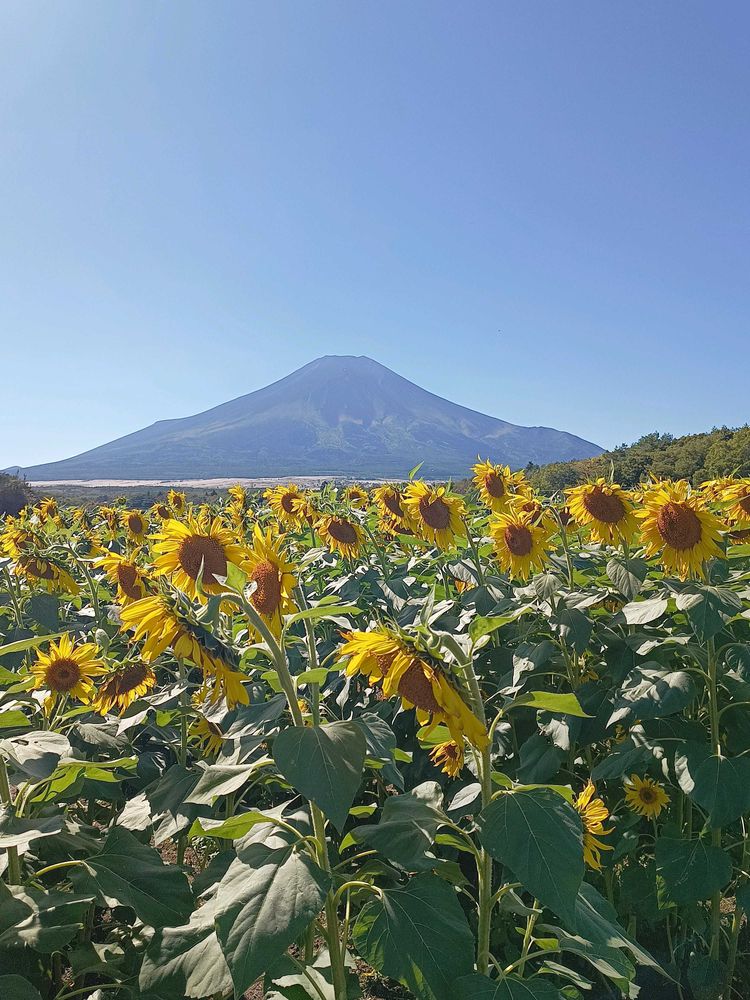 まだ🌻🌻🌻🌻🌻🌻🌻🌻がこんなに元気に、それも富士山🗻とのコラボ素敵〜🥰💕👍