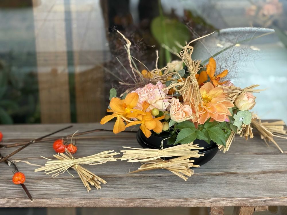 アレンジの中にミニかぼちゃがあるのですが埋もれちゃいました💦