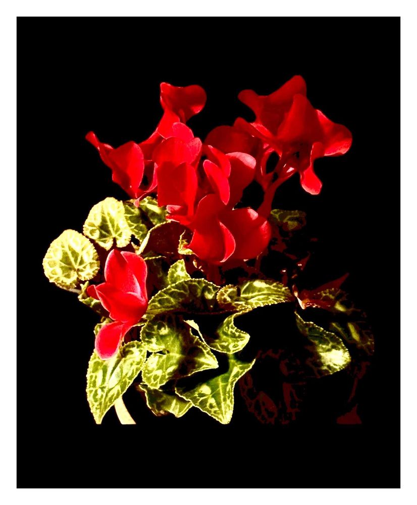 @訳意;The bright, pure and refreshing red cyclamen flowers are in full blooming.