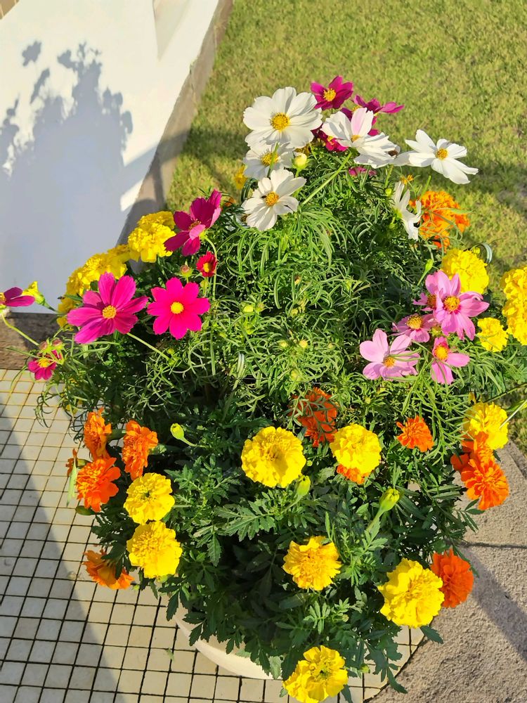 寄植えでコスモスされてるですか?背丈の高いコスモスでちょっと意外。どうやって作られてたんですか?