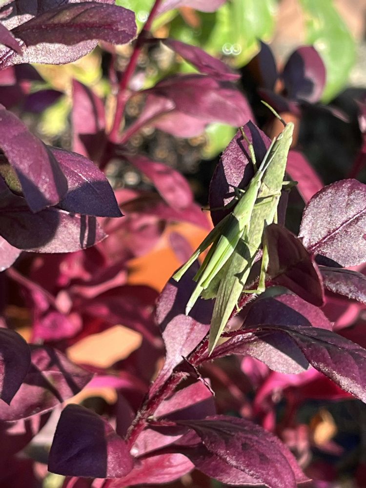 葉っぱにオンブバッタ。