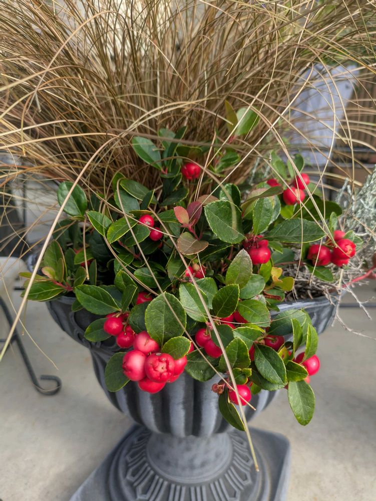 寄せ植えに残っていたチェッカーベリーが真っ赤になり、たわわに実のって来ました❤️