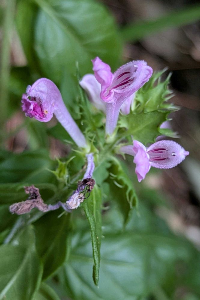 花の下にある、ギザギザが目立つのは苞葉で、ミヤマママコナにはギザギザがないのだとか💚