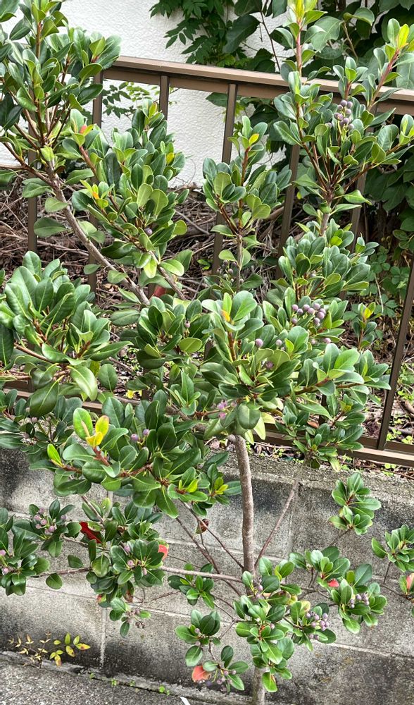 こちらは、自宅の斜め前に有るお隣さんの家の塀と地面の隙間から生えているシャリンバイの木です😆👍🌿🌳 ど根性さんでこんな隙間からでも、ちゃんと生きているのを見ると、励まされる感じがします😆👍✨ 実もしっかりなっていました😆👍🌿🫐🌿🫐🌳 素敵💓😍