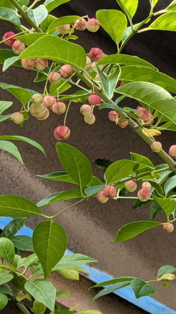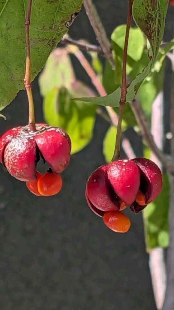 2️⃣ツリバナの実がはぜて赤い小さな粒🔴が覗いています。