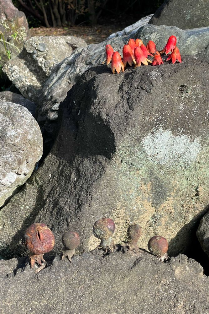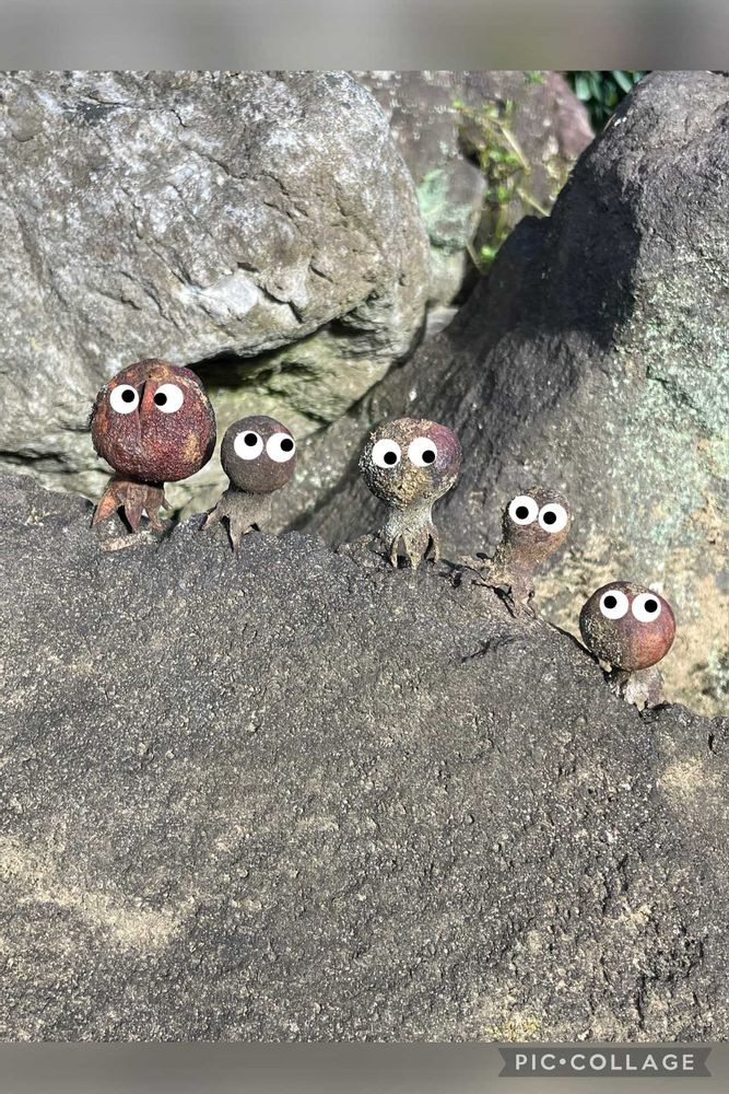 茶色チームも何だか面白いでしょ☺️もう、黒色化して土に同化しそうなのを拾って石の上に並べてみました😂写真にすると見えにくいかな?って思ったんですけど、見えて良かったです☺️