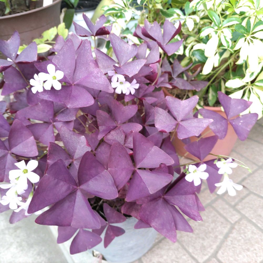 オキザリストリアングラリスも紫💜の葉がトライアングルみたいな形で
