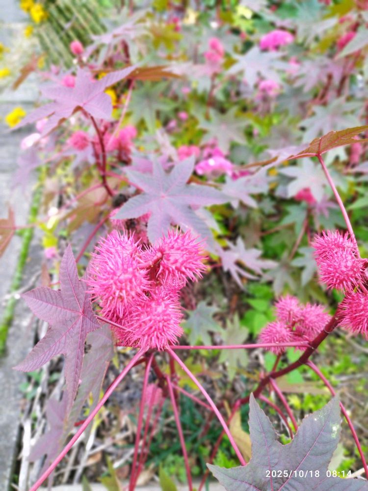 このトウゴマ、赤いトゲトゲの実&銅葉が素敵ですよね。