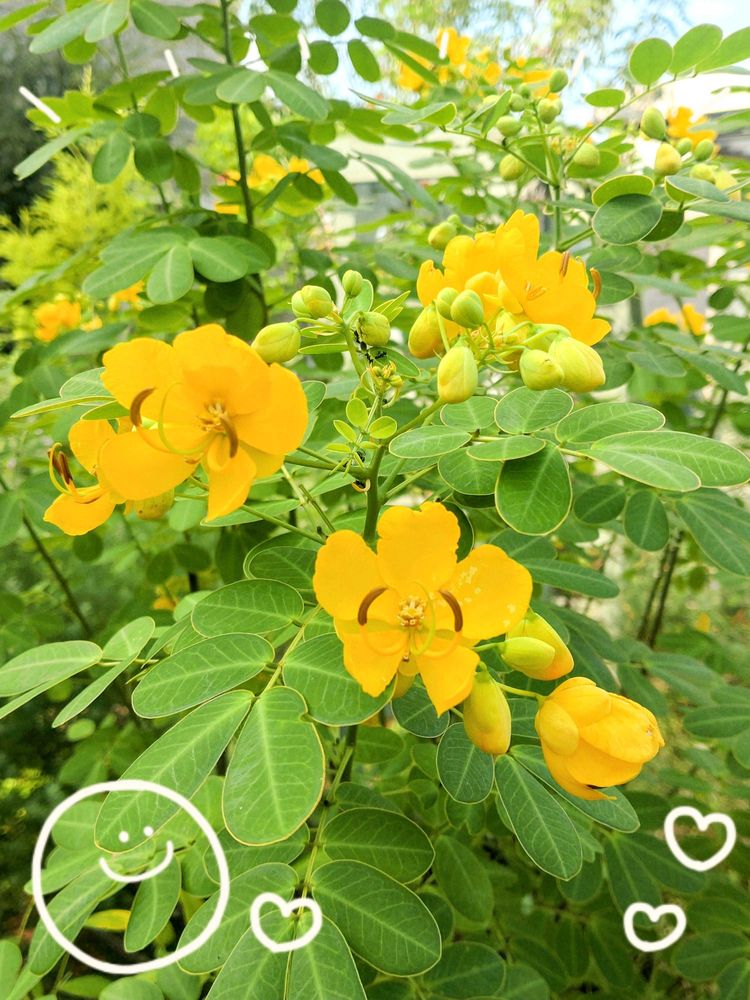 今年も元気に笑っているような顔でコバノセンナが咲いて賑やかな庭です☺️💕あまりのっぽにならないようにと娘が剪定してくれたけど…蕾がたくさんついていて良かった〜🙌💛