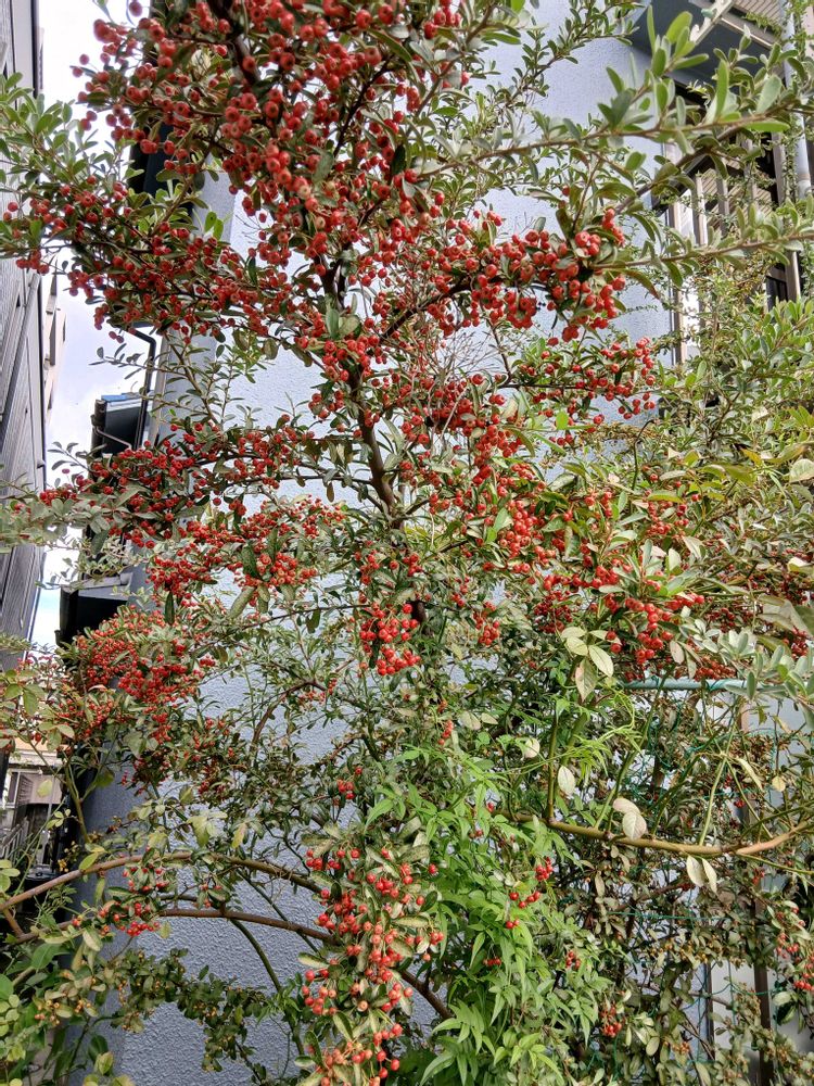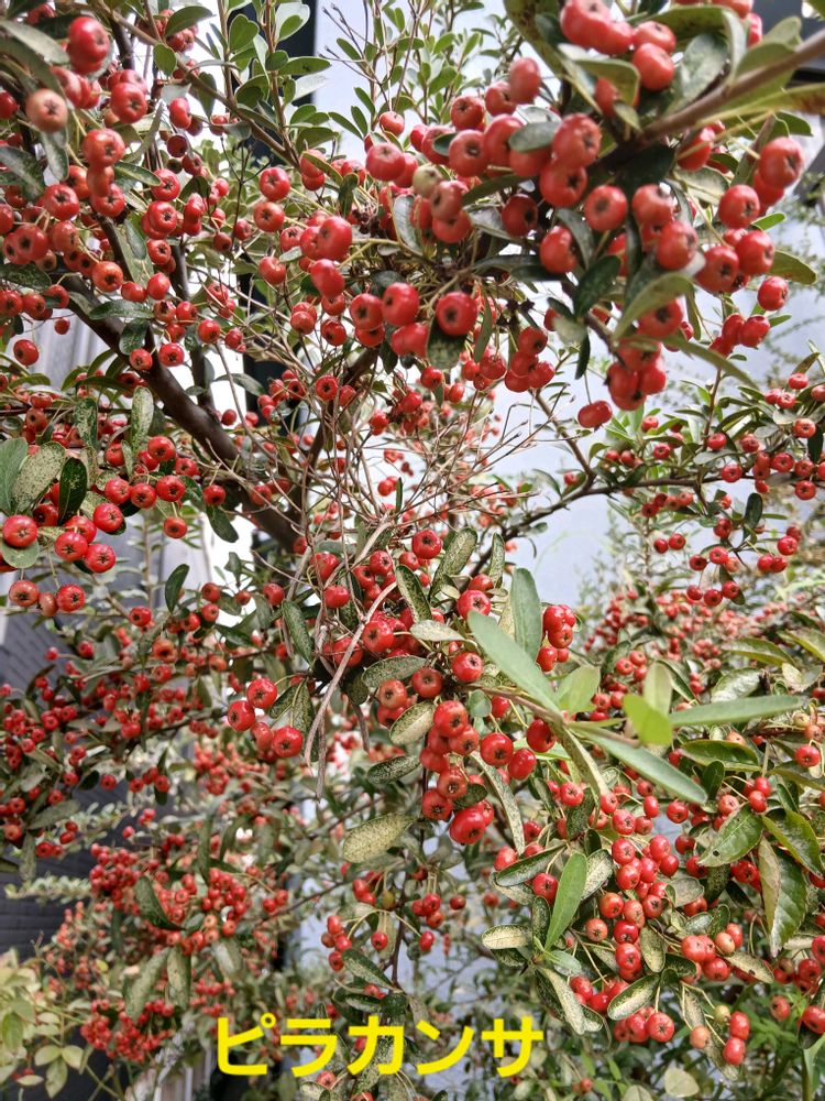 ピラカンサの赤とオレンジの実がワサワサと…😍