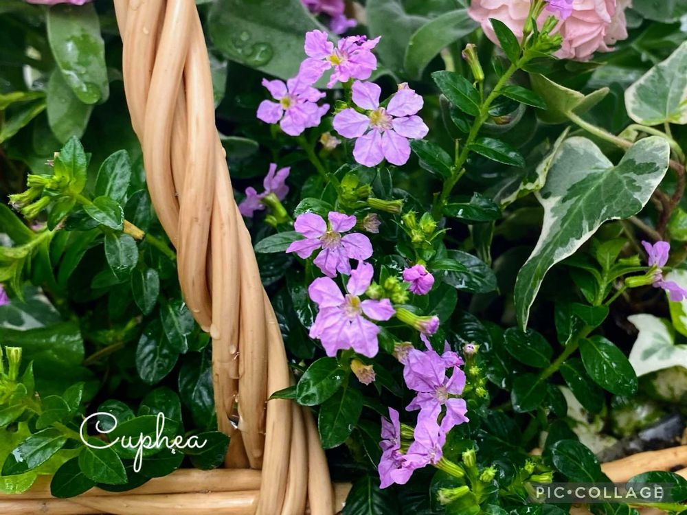 ストックを2つカゴに入れたらこれだけも可愛いなぁと思いましたが、植えてみたら足元が寂しかったのでクフェアとリーフを加えました🤗