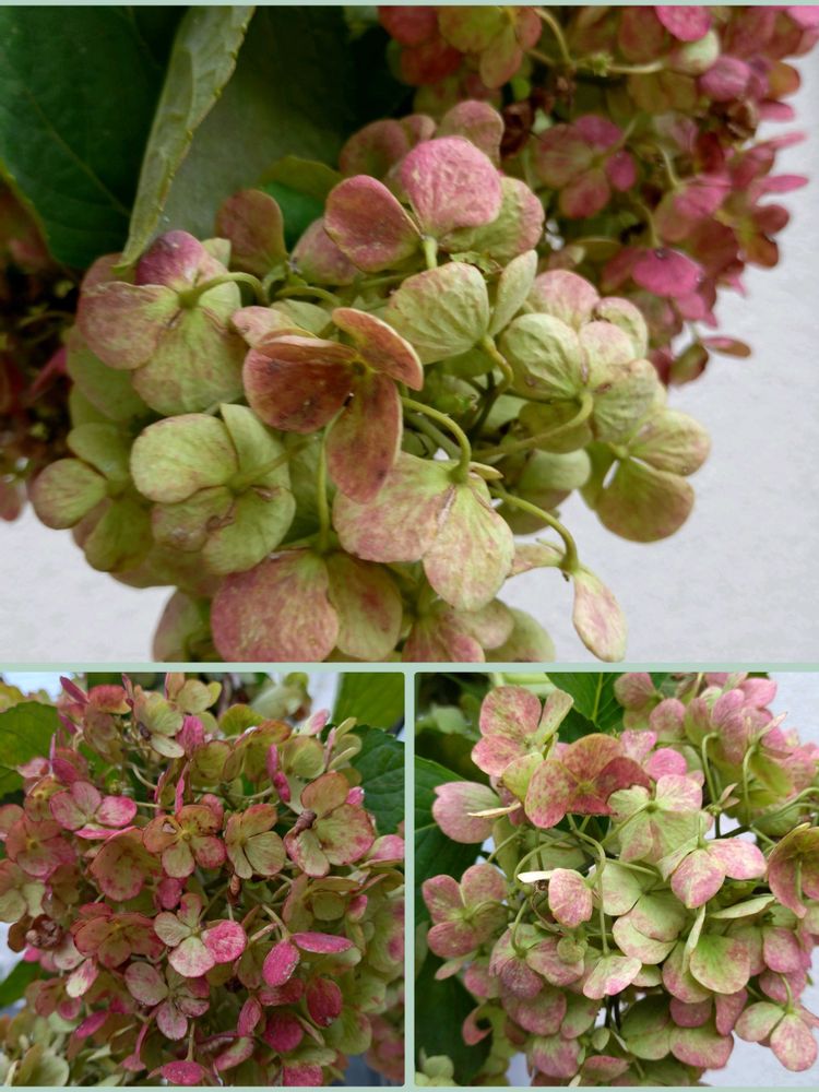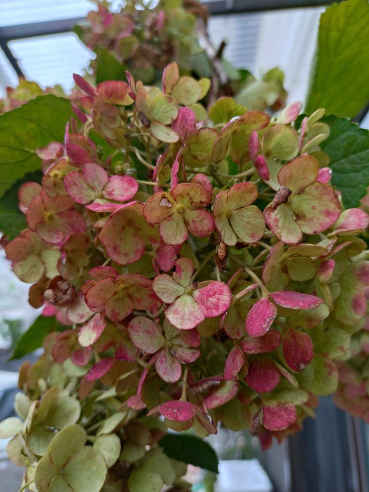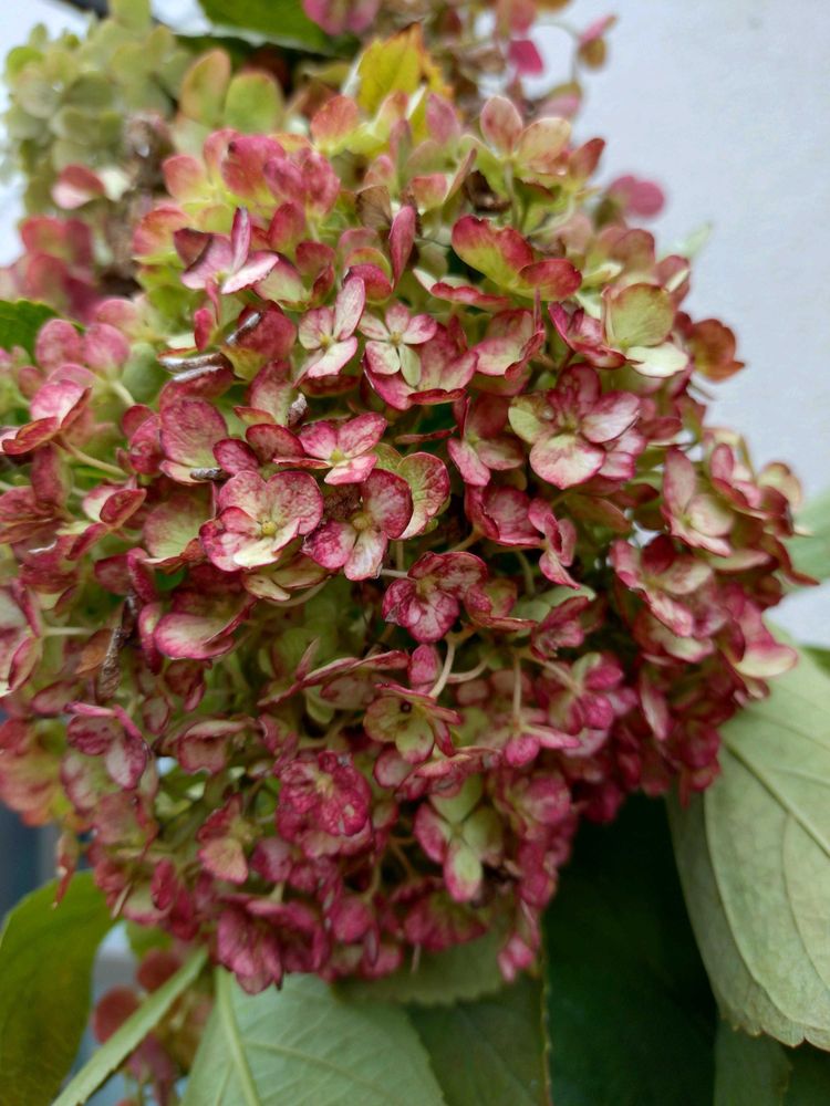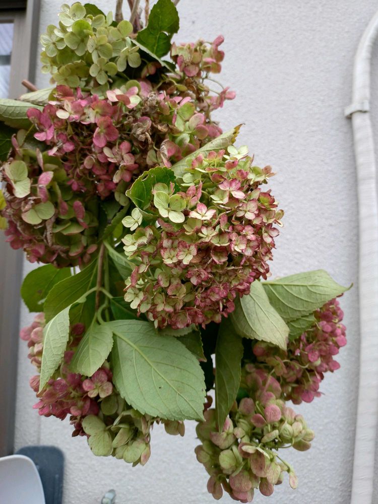 ①②③④少しだけ秋色になっていたアジサイを切り吊るしました✂️。