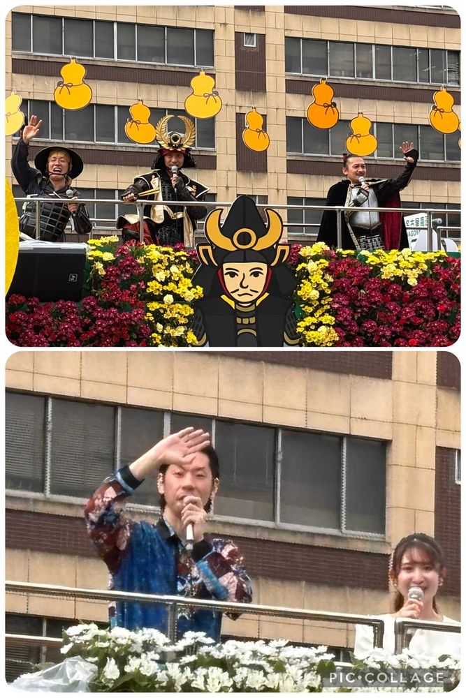 ②花車山に乗った 名古屋武将隊と呂布カルマさん
