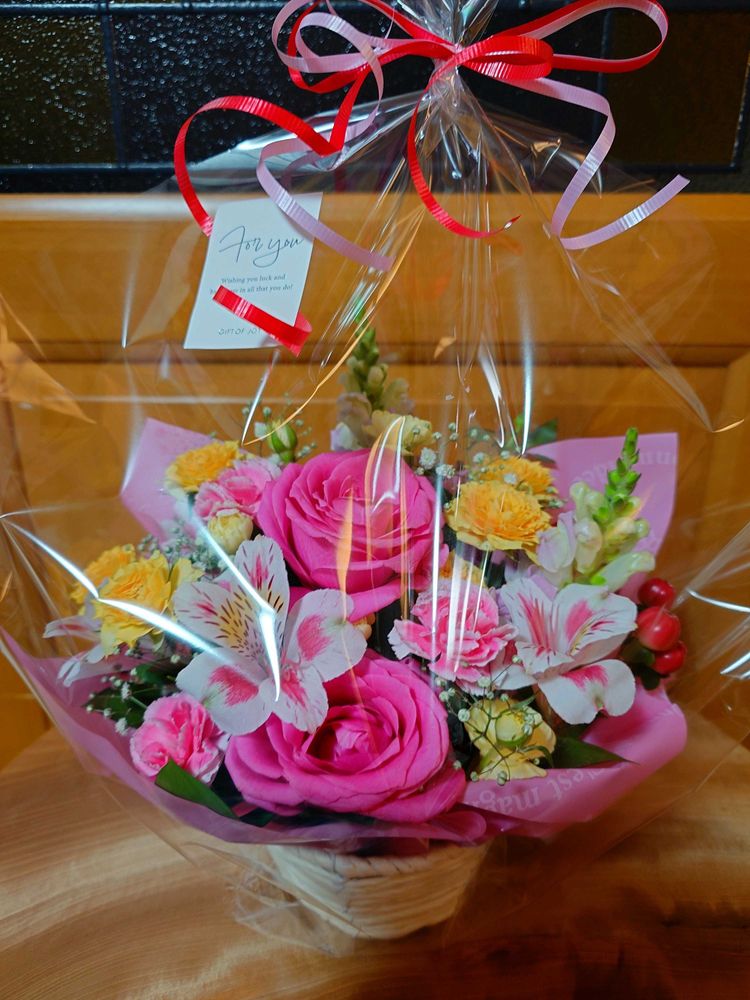 今回、初めて花籠をもらいました。ビックリ😲です。