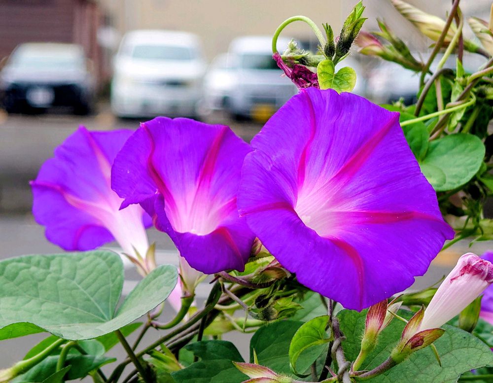 今日の午前、市内を散歩途中に見かけた朝顔をもう一枚。