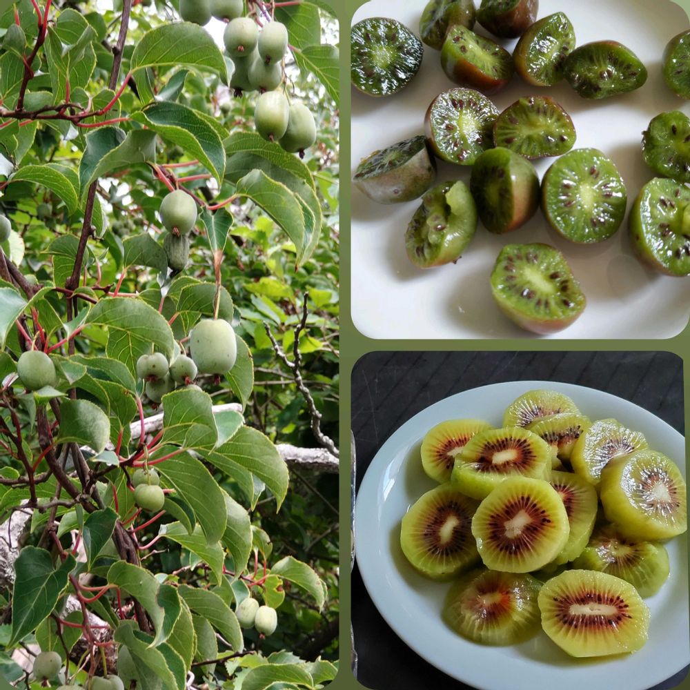①左側、8月に出会ったサルナシ🤳10日ほど前採ってきたサルナシ、カットするとキウイ🥝そのものでした〜甘くて美味しかったです😋物産館で見つけて買ってきた赤いキウイ🥝こちらも美味しかった〜😋