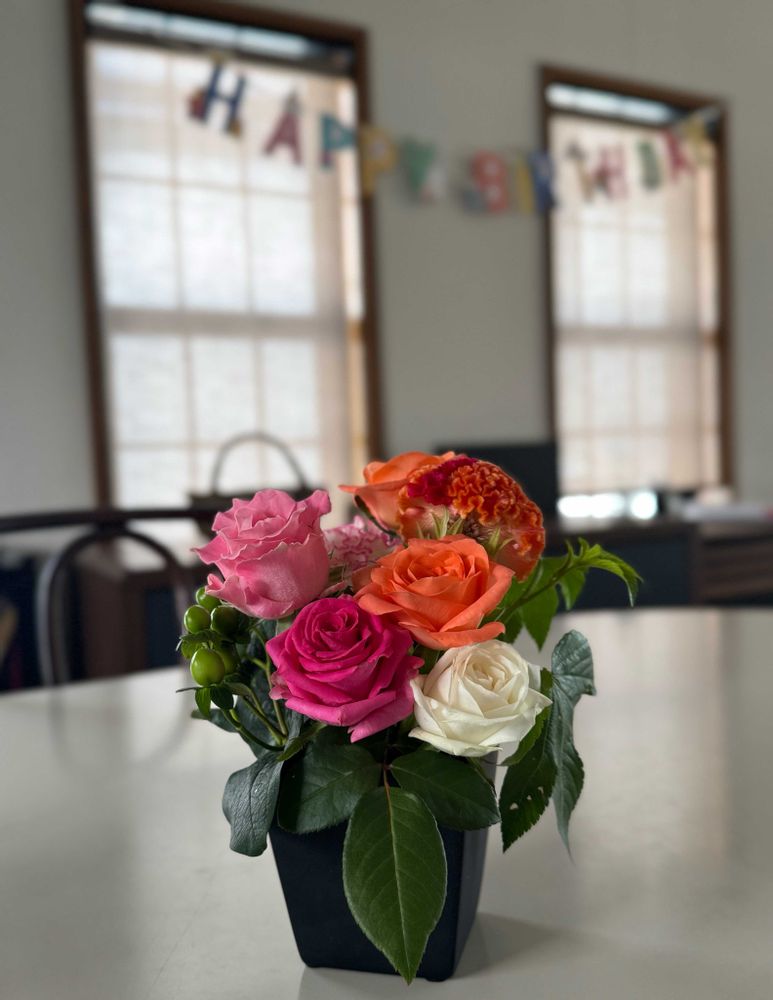 「いけばな教室」が有り 今回待ち帰って来たお花です🩷🧡🤍