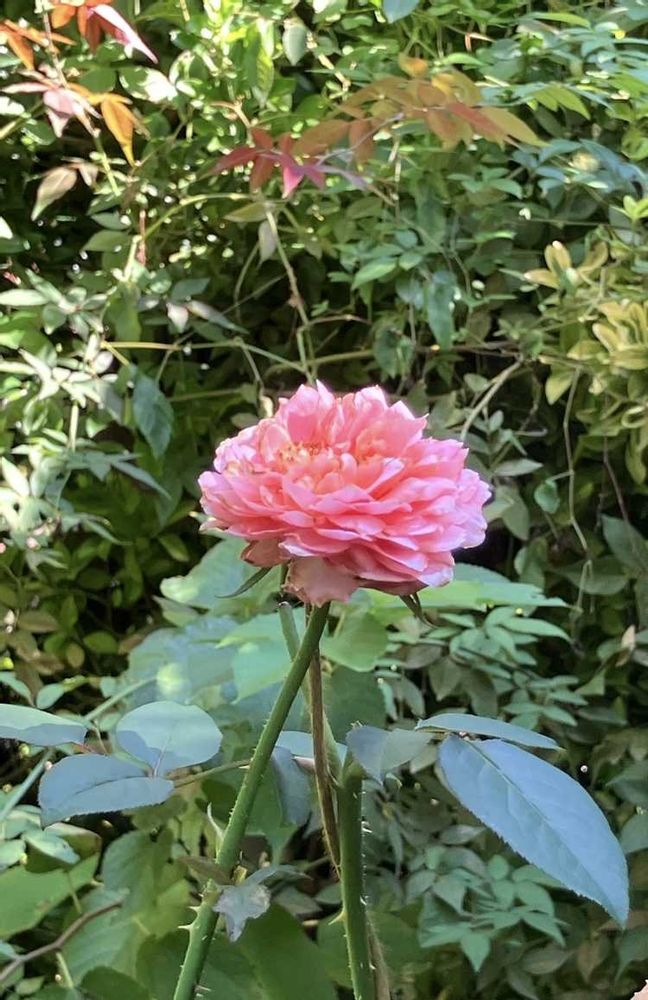 ハロウィンの装いとともに薔薇が見事に咲いている