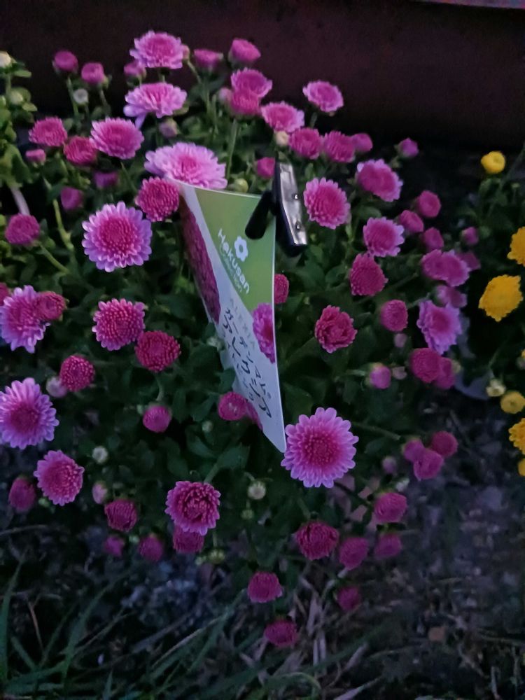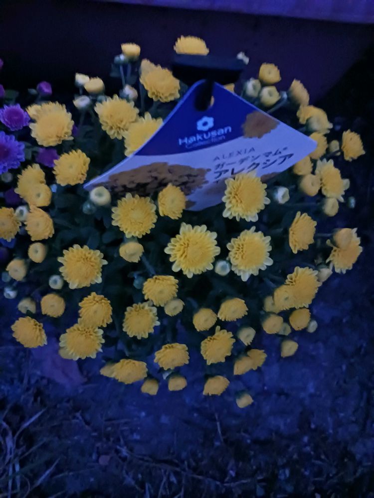 昨日の夕方、薄暗くなった庭でガーデンマムアレクシアさん達を撮りました。黄色、ピンク色随分開いてきました。