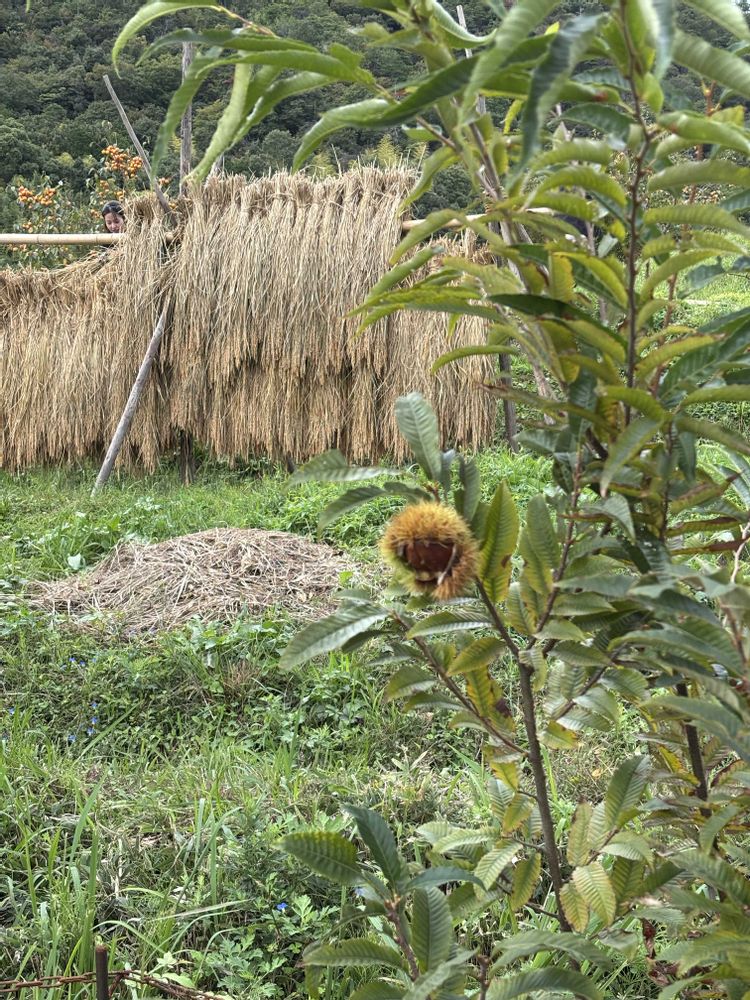 栗と稲架(はさ)掛けの稲🌾、3枚目には柿の三重奏を偶然撮影する事ができました🌰🥰