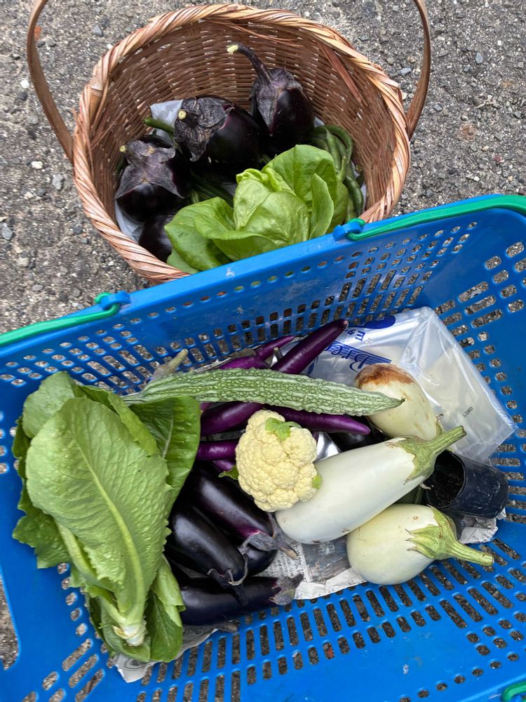 ゴーヤはなんとこの時期に初収穫。種を蒔くのが遅すぎます。。。