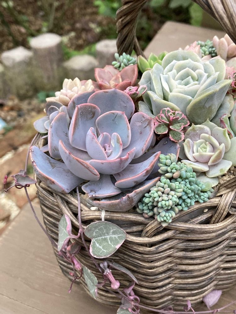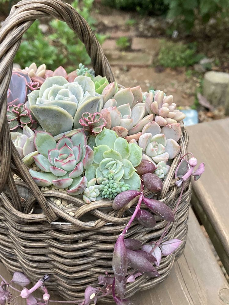 以前、ヒラヒラエケの寄せ植えで使ったカゴ🧺
