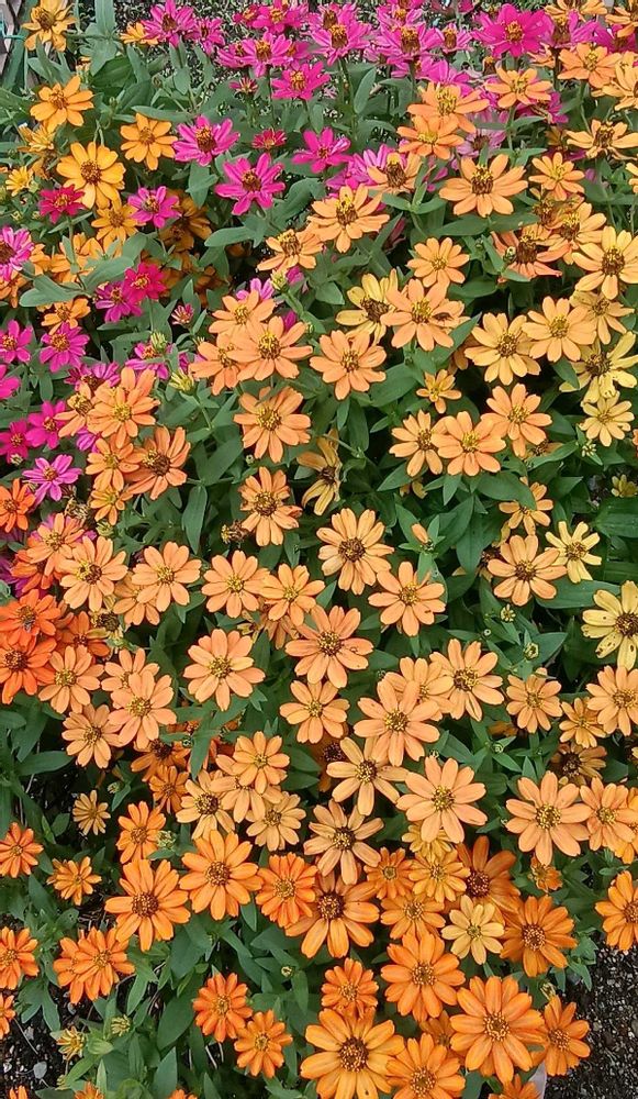 時期をずらして何回か種蒔きした種蒔きジニア🧡🩷💛