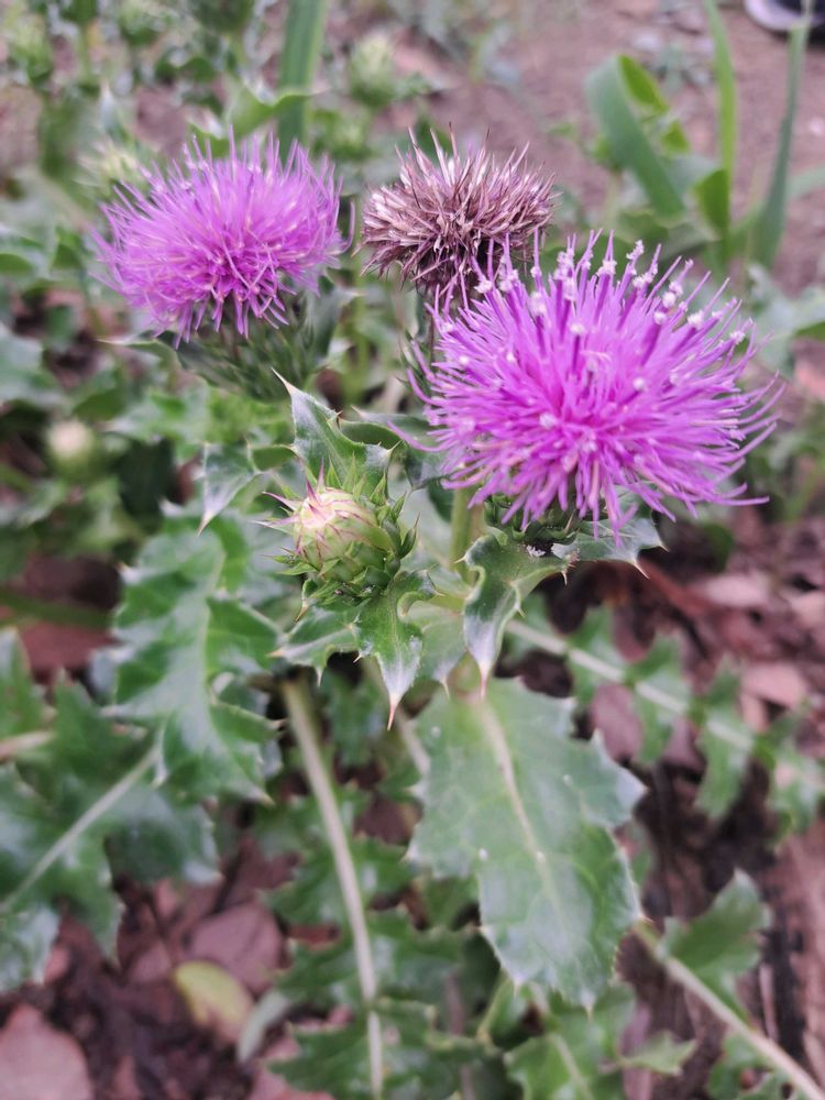 アザミ あんまり美しいから…何も……考えず、すっと手を出してトゲトゲでやられちゃう😬こんな顔になっても見入ってしまう綺麗だなぁ😐😄❣️