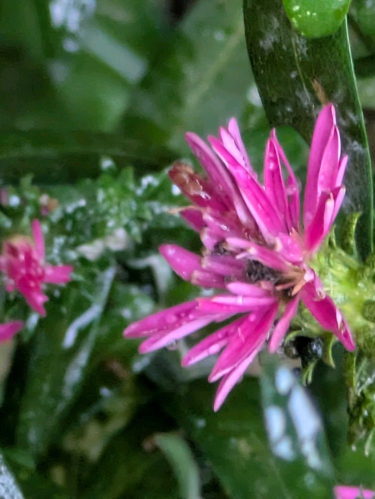 宿根アスターが咲いてきてるのですが虫にやられて花つきがよくない😢