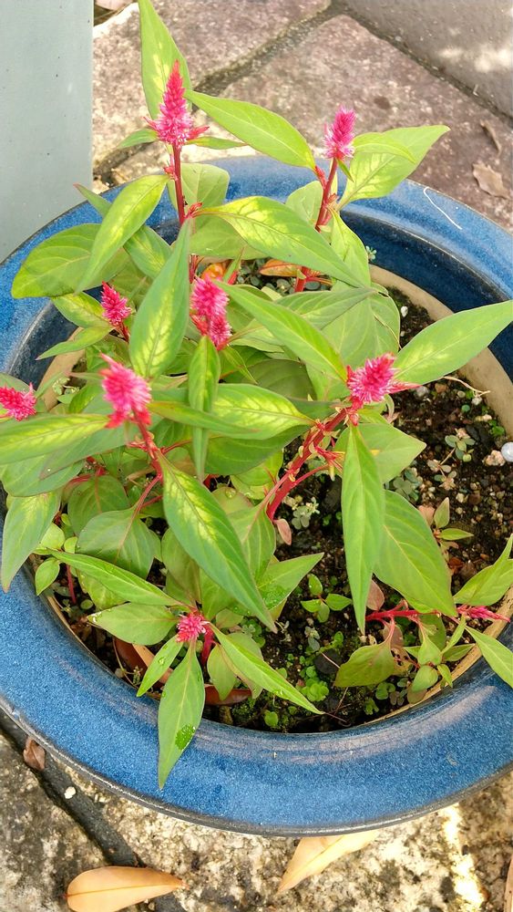 楽しませてくれたケイトウさんの鉢にこぼれダネから2度目のお花が🎵なんてリーズナブル‼️ナンでしょ‼️(笑)