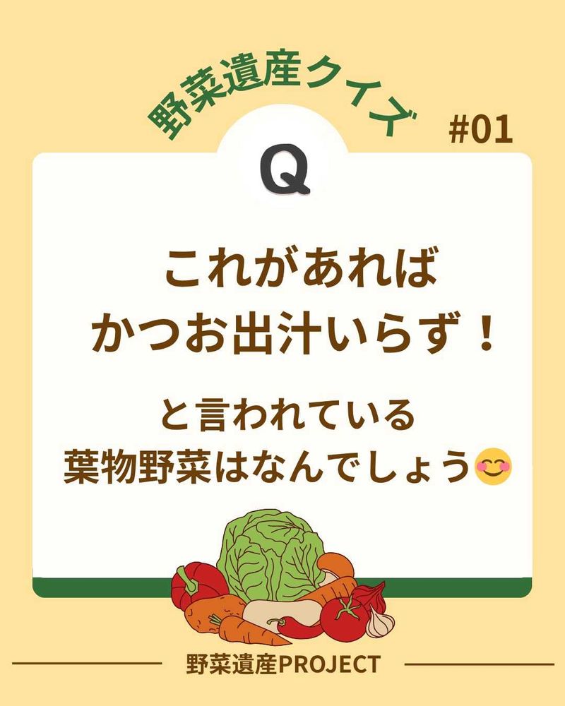 🌱 野菜遺産クイズ #01|「かつお出汁いらず」と言われている葉物野菜はなんでしょうか😊