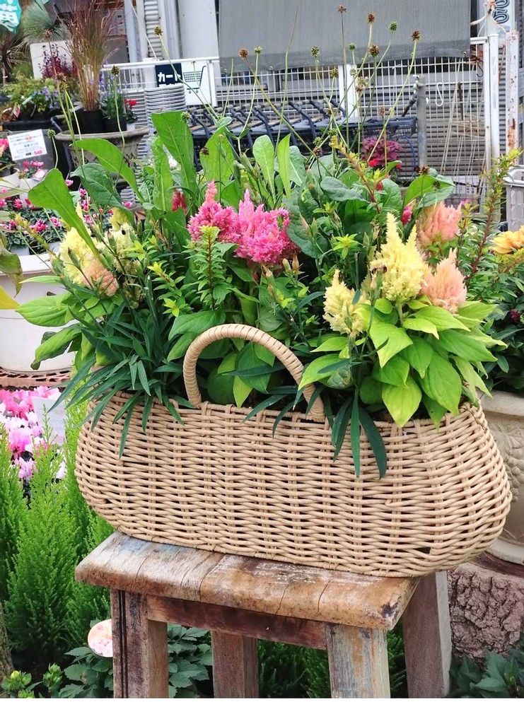 ❶園芸店の籠の寄せ植え🧺🌼🌿