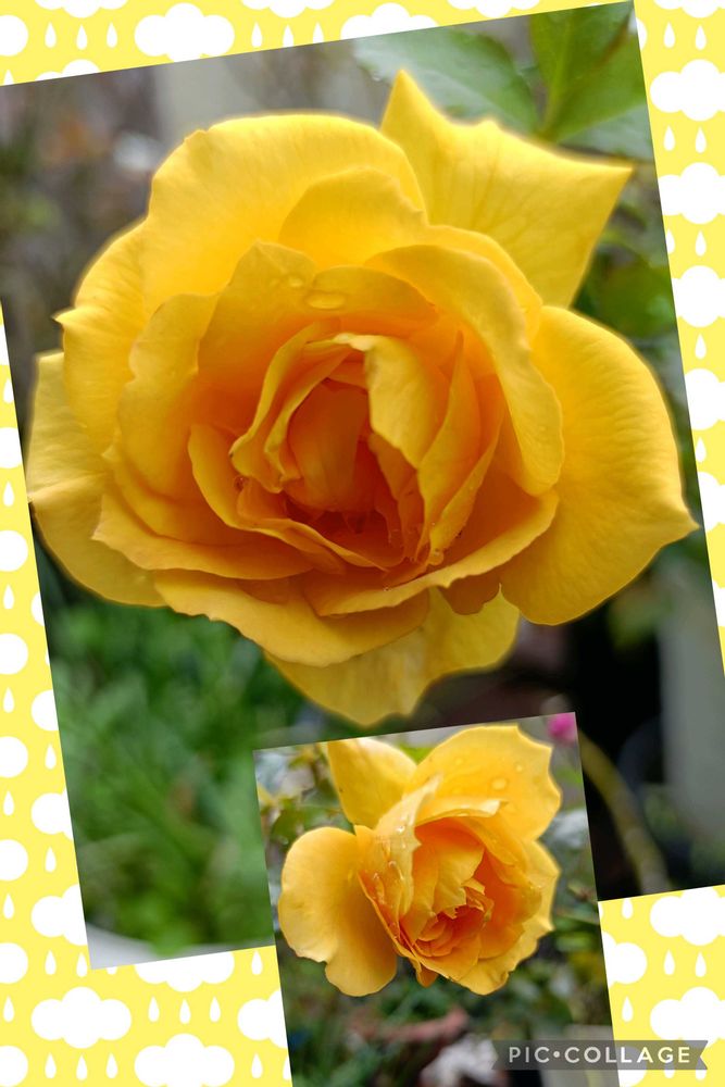 3枚目は雨の日はビタミンカラーがより鮮やかになって見える今朝咲いたバラ サハラ
