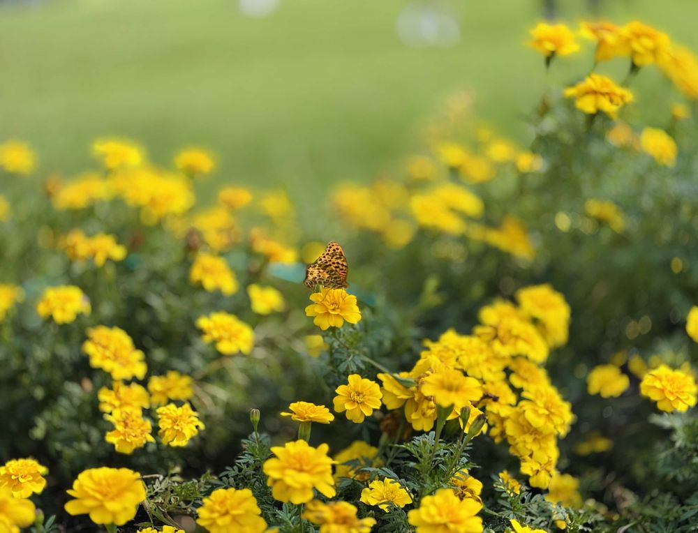 マリーゴールド,ツマグロ ヒョウモン蝶,花のある暮らしの投稿画像