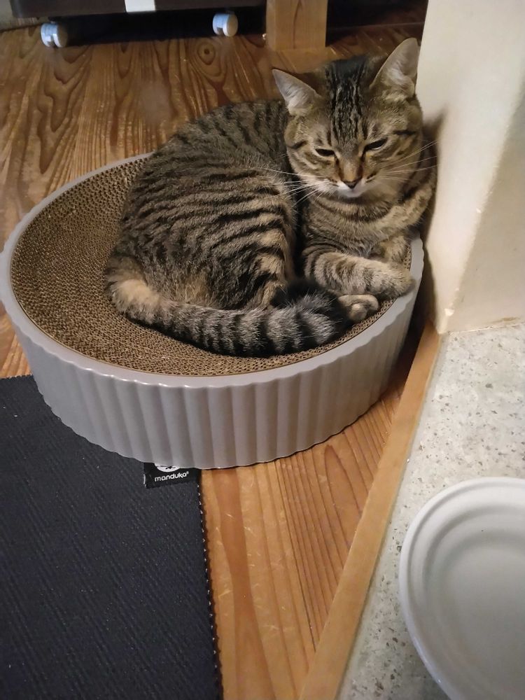@ゆん さん目🙀を掛けて下さって有難う御座います😊丸くなってアンモナイトみたいになって爆睡する場所みたいです。夜寝るときは娘の布団にチョンチョンとして、入って寝るそうです。この所寒くなったから~🙀
