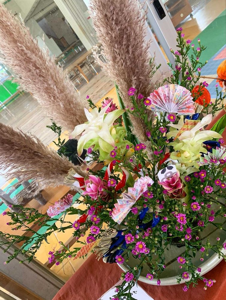 9月の生け込み 小花が一斉に開花した鮮やかさをお祭りの賑やかな空間として表現してみました。