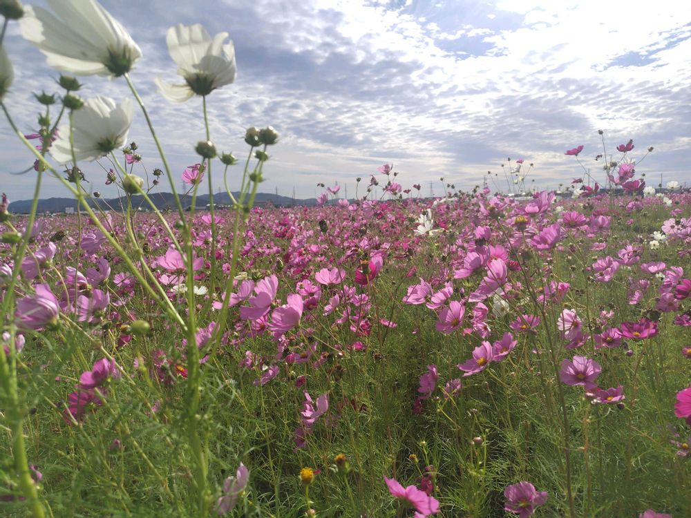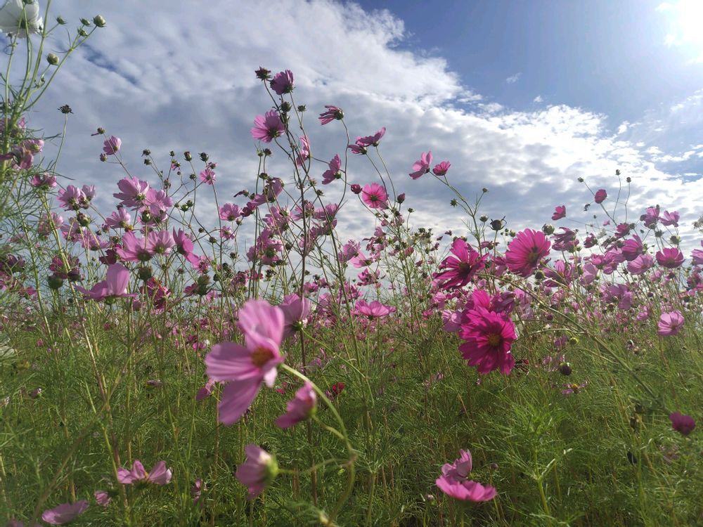 知り合いの連中からは今まで大きなバイクを乗ってきたので嘸かし寂しい思いをしているだろうと思っているみたいだが、全くそんな感じもなく軽装で最高時速30キロで二段階右折もしぃ〜のでのほほんと走ってた時にフッと目に止まった秋空の秋桜。
