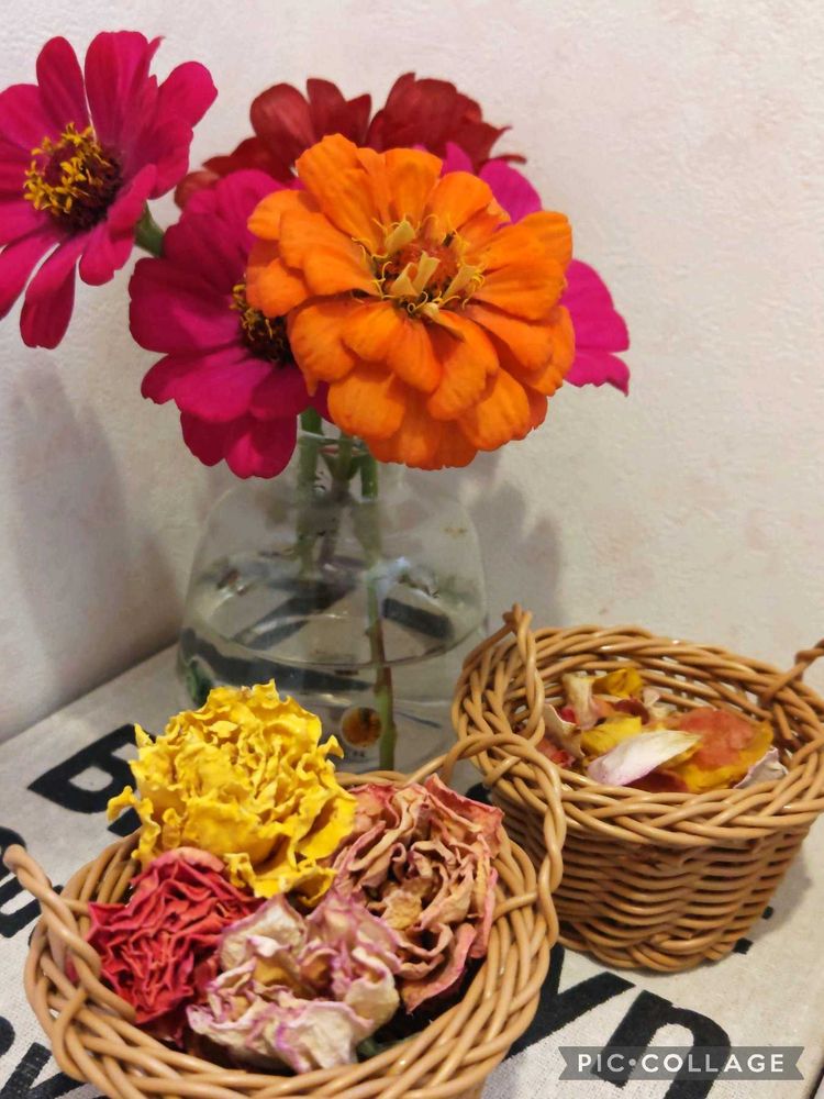 最後の🌹の花びらをドライにして、小さな🧺に入れました