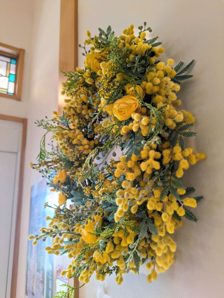 💛ミモザのリースとっても素敵😍💛💛💛 エンジェル⁽⁽ଘ( ˊᵕˋ )ଓ⁾⁾ちゃんひょうきんなお顔🤭🤭🤭👌